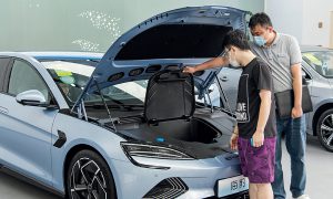 在上海专卖店展示的一辆比亚迪电动汽车。图片来源:VCG/GETTY IMAGES 继刀片电池、易四方平台后,比亚迪携又一项“黑科技”亮相。4月10日,比亚迪发布了全球首个新能源专属...