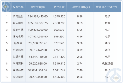 以曹晋在富国管理时间最长的富国中小盘精选A为例,最新的二季报显示,该基金持仓以成长行业为主,前十大权重股集中度为44.55%,重仓股集中在电子、通信、机械设备和传媒。