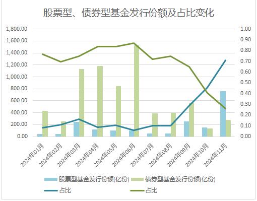 不过,进入11月,发行市场热度再起,截至11月13日,11月新成立基金发行份额已突破1000亿份,达1062.71亿份