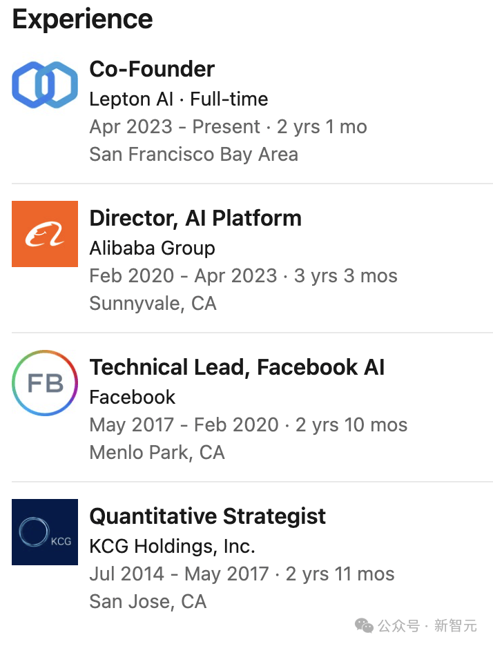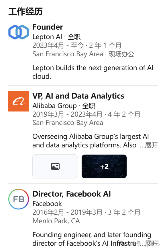 白俊杰与贾扬清有着相似的职业经历,他们都曾在Meta和阿里云任职。