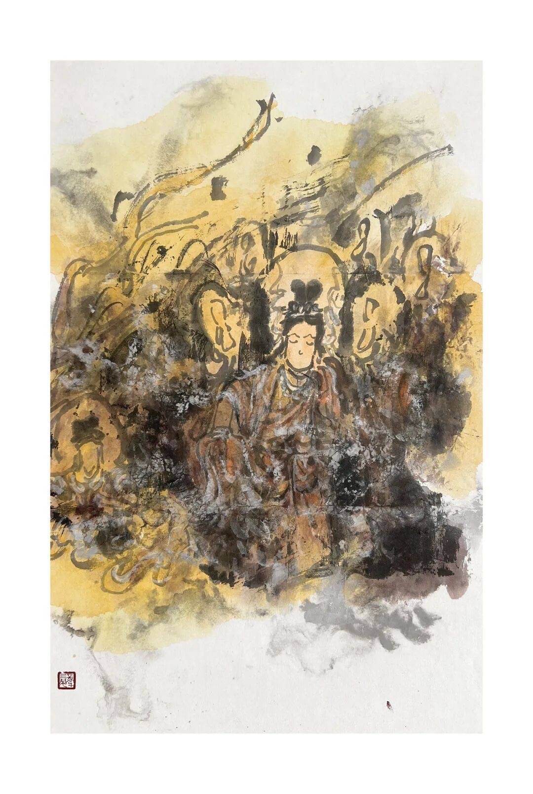 他的创作,某种程度上可视为个人修行与艺术体悟的视觉日记。六年来,他察石窟、观造像,纵情领略旷野风物。这些体验都融入了他的创作中,形成了独特的艺术语言。