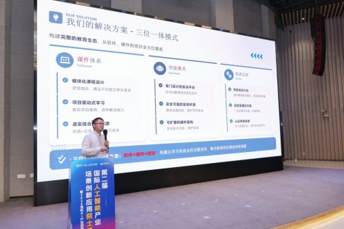 玻利维亚国家科学院院士、乌克兰国家工程院外籍院士、西安电子科技大学杭州研究院教授蒋林华围绕《AI教育——前沿趋势、挑战与机遇》展开分享。他提出”课件体系+智能教具+培训支持”三位一体的教育模式,重点布局机器人、无人车、无人机三大方向,推动科研成果向标准化教学资源转化,打通人才培养与产业需求之间的通道。