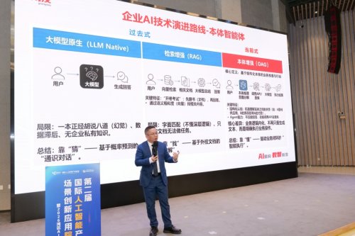 用友网络科技股份有限公司副总裁余恕奇《企业AI引领价值创新》为题,重点介绍了用友BIP智能体构建平台,支持10分钟快速搭建专属智能体,通过”AI×数据×流程”原生一体化架构,赋能企业业务模式、管理方式、工作方式进行智能升级。