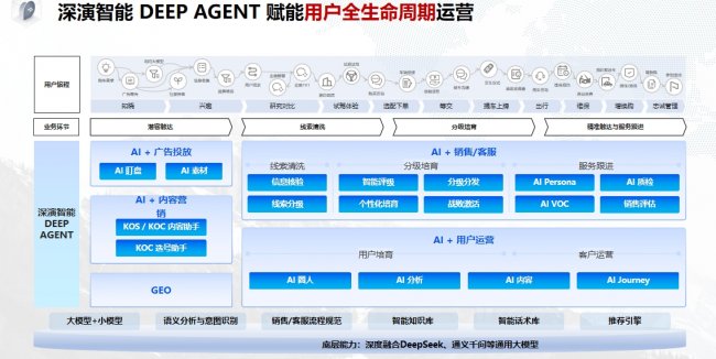 营销场景千差万别:电商需要个性化推荐,社交平台需要KOL效果验证,出海企业需要跨域用户管理……深演智能的企业级AI智能体平台DeepAgent 3.0覆盖七大领域、二十余款智能体,针对不同场景提供端到端的解决方案。